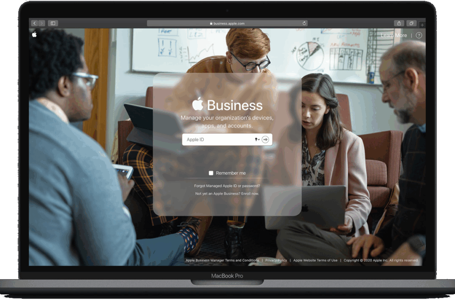 Apple Business Manager es un portal web que te ayuda a implementar el iPhone, el iPad, la Mac y el Apple TV. Puedes dar a tus empleados acceso a los servicios de Apple, configurar el registro de dispositivos y distribuir apps, libros y software. Todo desde un mismo lugar.